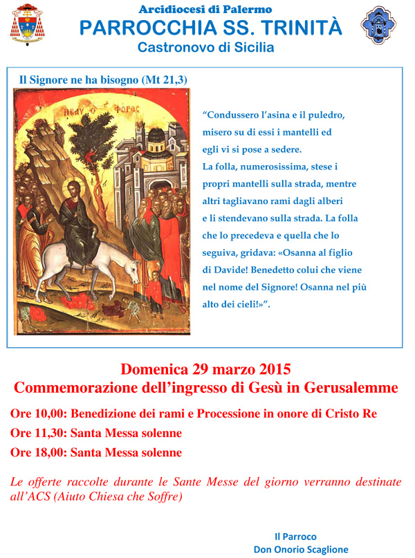 Commemorazione dell’ingresso di Gesù in Gerusalemme